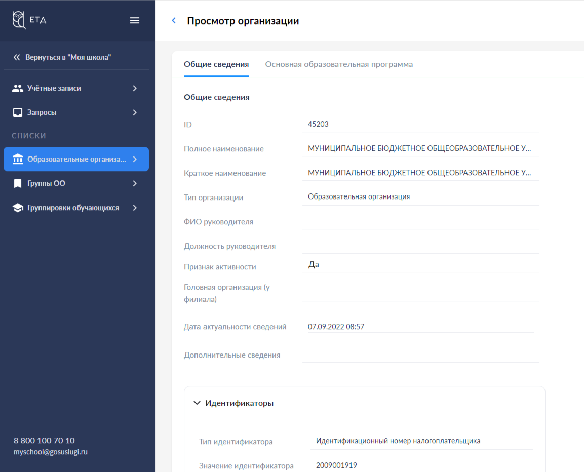 образовательной организации, а также