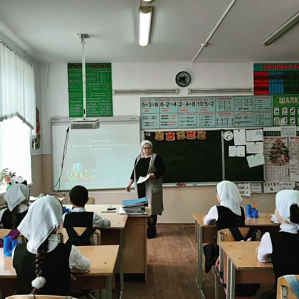 16.12.2019Сегодня, 16 декабря 2019 года, учитель начальных классов МБОУ «СОШ с.Чурч-Ирзу» Ильясова Марика Ширваниевна провела в 4 «а» классе классный час на тему «Профилактика экстремизма и терроризма». Цели и задачи мероприятия: ✅ формировать общественное сознание и гражданскую позицию подрастающего поколения; ✅ объяснить сущность терроризма; ✅ изучить правила поведения при теракте; ✅ закрепление знаний о терроризме и способах сохранения жизни при захвате заложников; ✅ обучение логической цепочке действий; ✅ развитие умений систематизировать полученные знания; ✅ воспитание ответственного отношения к своей жизни и жизни окружающих. Мероприятие проведено с использованием компьютерной презентации.