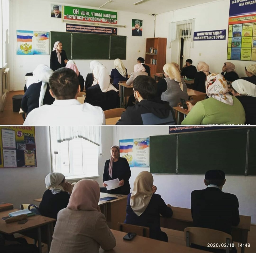 18.02.2020Сегодня, 18 февраля, в МБОУ «СОШ с.Чурч-Ирзу» прошло совещание при директоре Директор школы Магамедова Аза Денисолтаевна акцентировала внимание педколлектива на необходимости усиления работы по тем направлениям, озвученным по итогам вчерашней инспекции в школу Начальником МУ «Управление образования Ножай-Юртовского муниципального района Чеченской Республики» Сайпуддином Юсуповичем Зубайраевым .Учителям-предметникам нужно тщательно готовиться к урокам, систематически заниматься самообразованием и саморазвитием, совершенствовать свои методические и предметные компетенции; необходимо активизировать и усилить воспитательную работу, проводимую с обучающимися; активизировать работу, направленную на популяризацию и развитие чеченского языка, духовно-нравственное воспитание подрастающего поколения, воспитании обучающихся в духе национального менталитета и истинных ценностей исламской религии.Всем заместителям директора поручено систематически посещать и анализировать уроки учителей.Также обсудили вопрос создания в кабинете чеченского языка стенда и уголка, посвященного известному писателю, учёному, драматургу и поэту, уроженцу села Чурч-Ирзу Магомед-Салаху Гадаеву. Аза Денисолтаевна поручила учителям начальных классов и классным руководителям провести классные часы и беседы, посвященные жизни и деятельности М-С. Гадаева, приобрести и вывесить в классах стенды и баннеры о жизни и деятельности М-С. Гадаева.Аза Денисолтаевна вкратце ознакомила присутствующих с итогами совещания, прошедшего 16 февраля в ГБОУ «Лингвистическая школа имени Ю.Д. Дешериева» с участием Министра просвещения России С.С. Кравцова и временно исполняющего обязанности руководителя Рособрнадзора А.А. Музаева:усилить работу по подготовке обучающихся 9 и 11 классов к ГИА-2020; о необходимости объективного проведения ВПР.
