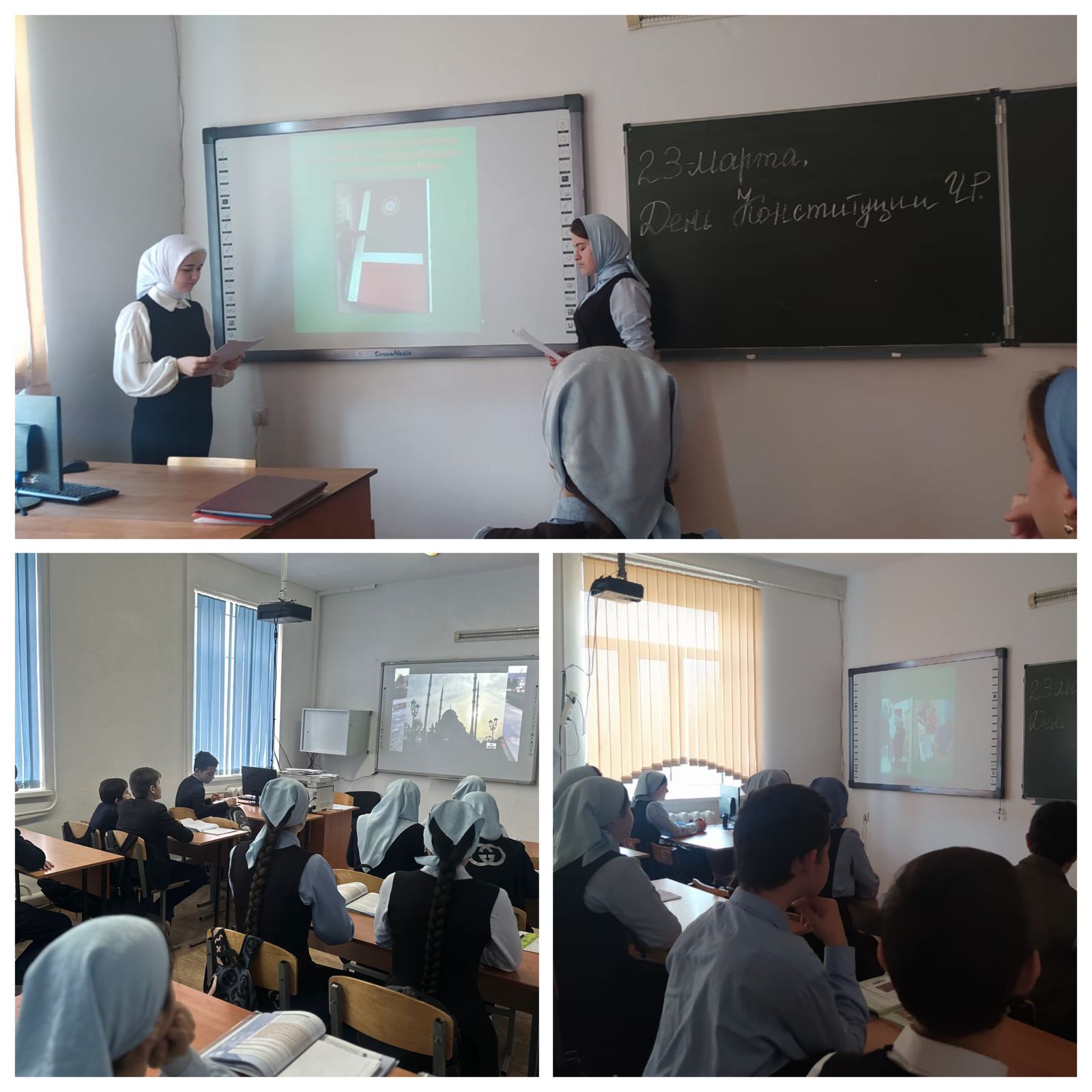 22.03.2024В нашей школе прошли тематические уроки, посвященные Дню Конституции Чеченской Республики. Этот важный праздник был приурочен к 20-летию принятия Конституции нашей родной Республики. Занятия были не только образовательными, но и вдохновляющими. Эти уроки напомнили нам о важности защиты прав и свобод каждого человека, а также о нашей ответственности перед нашей родной Республикой и ее Конституцией.