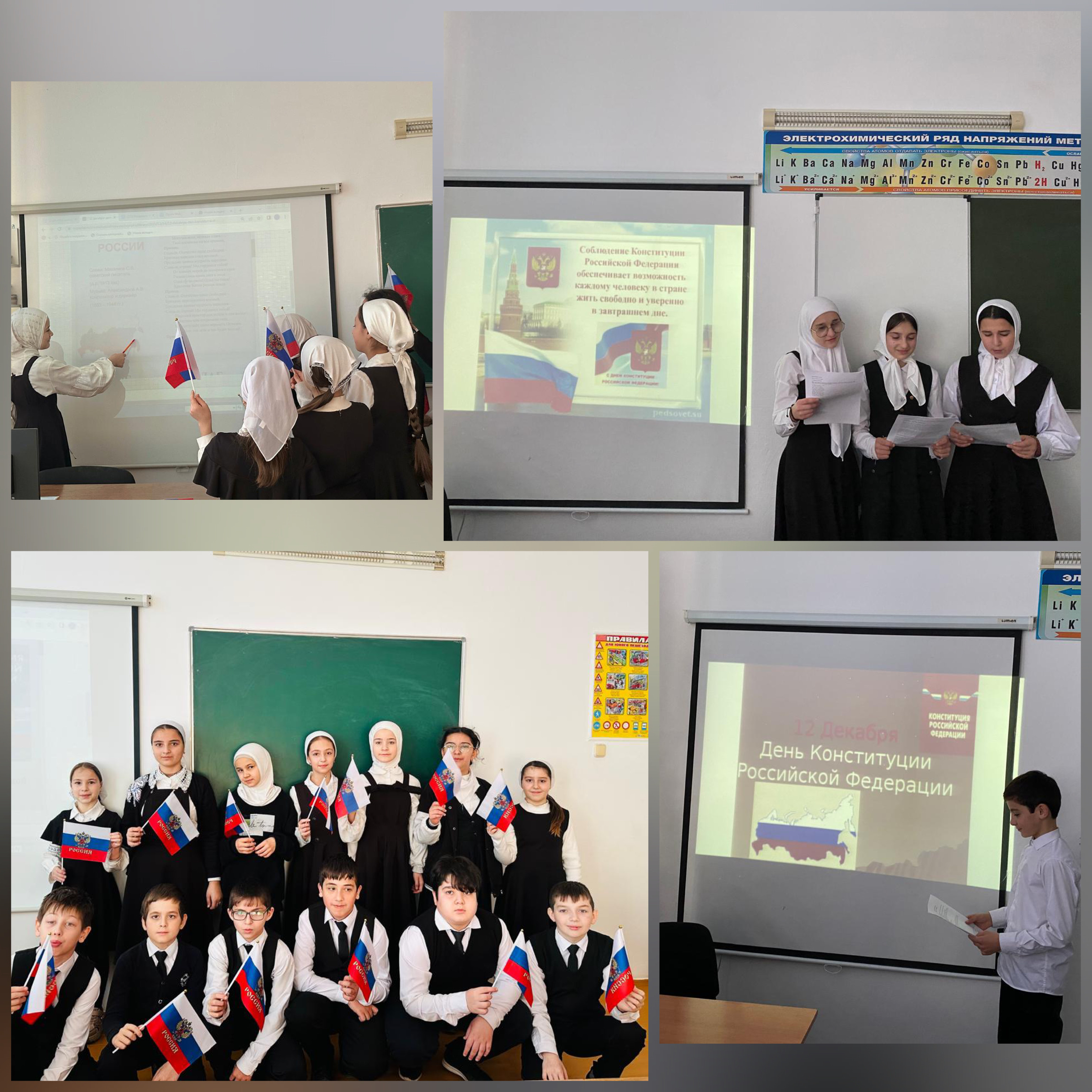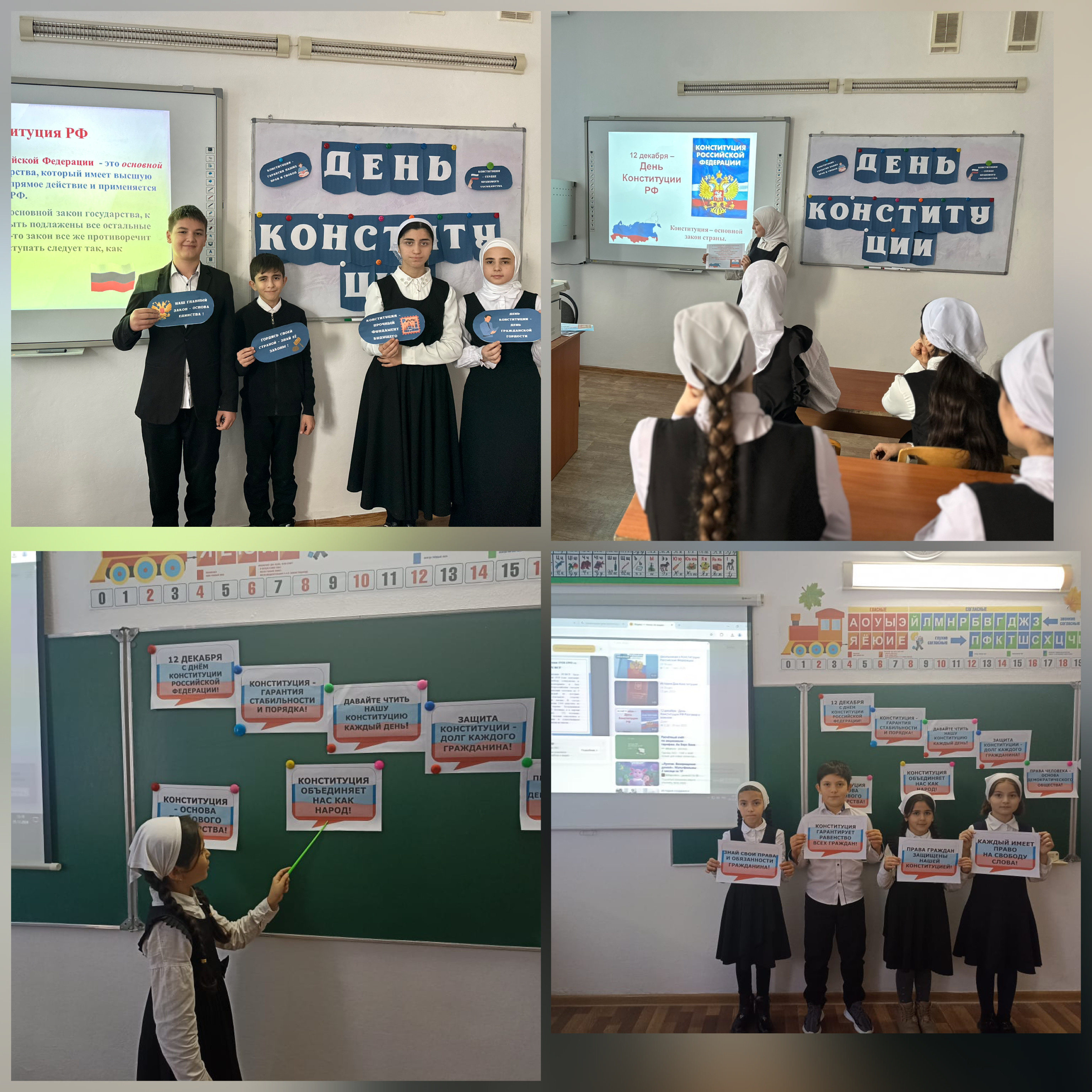 05.12.2024Во взаимодействии с Отделом в Ножай-Юртовском районе УФСБ России по Чеченской Республике в МБОУ «СОШ с.Чурч-Ирзу им.М-С.Г.Гадаева» проведены классные часы посвященные Дню Конституции России.Учителя подготовили интересные презентации, в которых рассказали о значении Основного закона страны, его истории и основных принципах.На мероприятиях обсуждали, какКонституция защищает права граждан и какие изменения происходили с течением времени. Ученики активно участвовали в обсуждении, задавая вопросы и делясь своими мнениями. День Конституции - отличный повод задуматься о своих правах и обязанностях, а также о том, как мы можем внести свой вклад в развитие нашего общества.