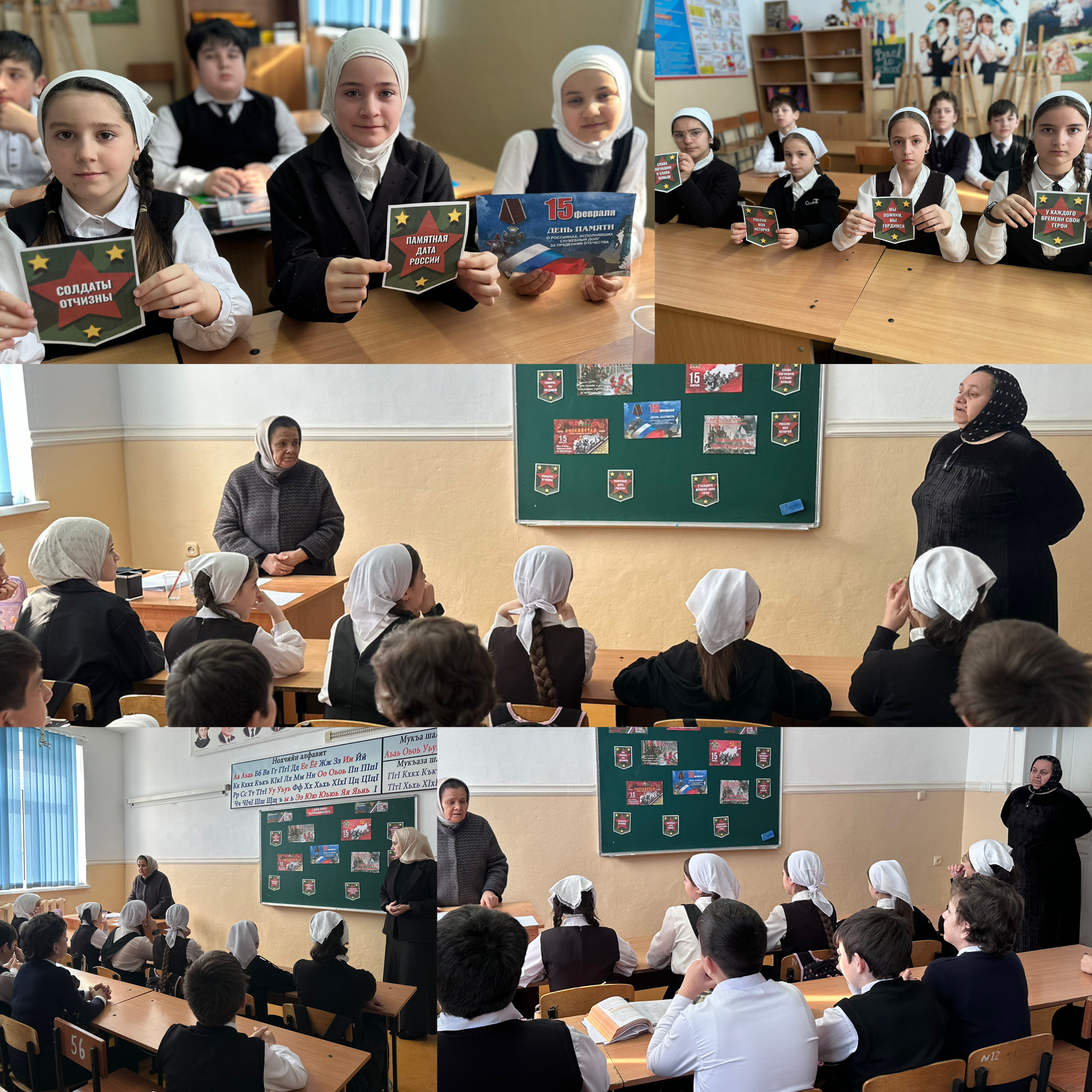 14.02.2025Во взаимодействии с отделом в Ножай-Юртовском районе УФСБ России по Чеченской Республике 14.02.25г. В нашей школе прошла значимая беседа, посвященная 15 февраля - Дню воинов-интернационалистов. Школьный библиотекарь совместно с классными руководителями организовали мероприятия в 5 классах, чтобы познакомить ребят с историей этой памятной даты и значением героизма тех, кто выполнял свой долг за пределами Родины.На встречах ученикам рассказали о событиях, связанных с Афганской войной, о мужестве и стойкости солдат, которые защищали интересы нашей страны. Библиотекарь подготовила интересные материалы, которые помогли ребятам лучше понять и почувствовать важность этой темы.Учащиеся активно участвовали в обсуждениях, задавали вопросы и делились своими мыслями. Такие встречи помогают воспитывать уважение к истории и памяти, формируя у детей гражданскую позицию и чувство патриотизма.