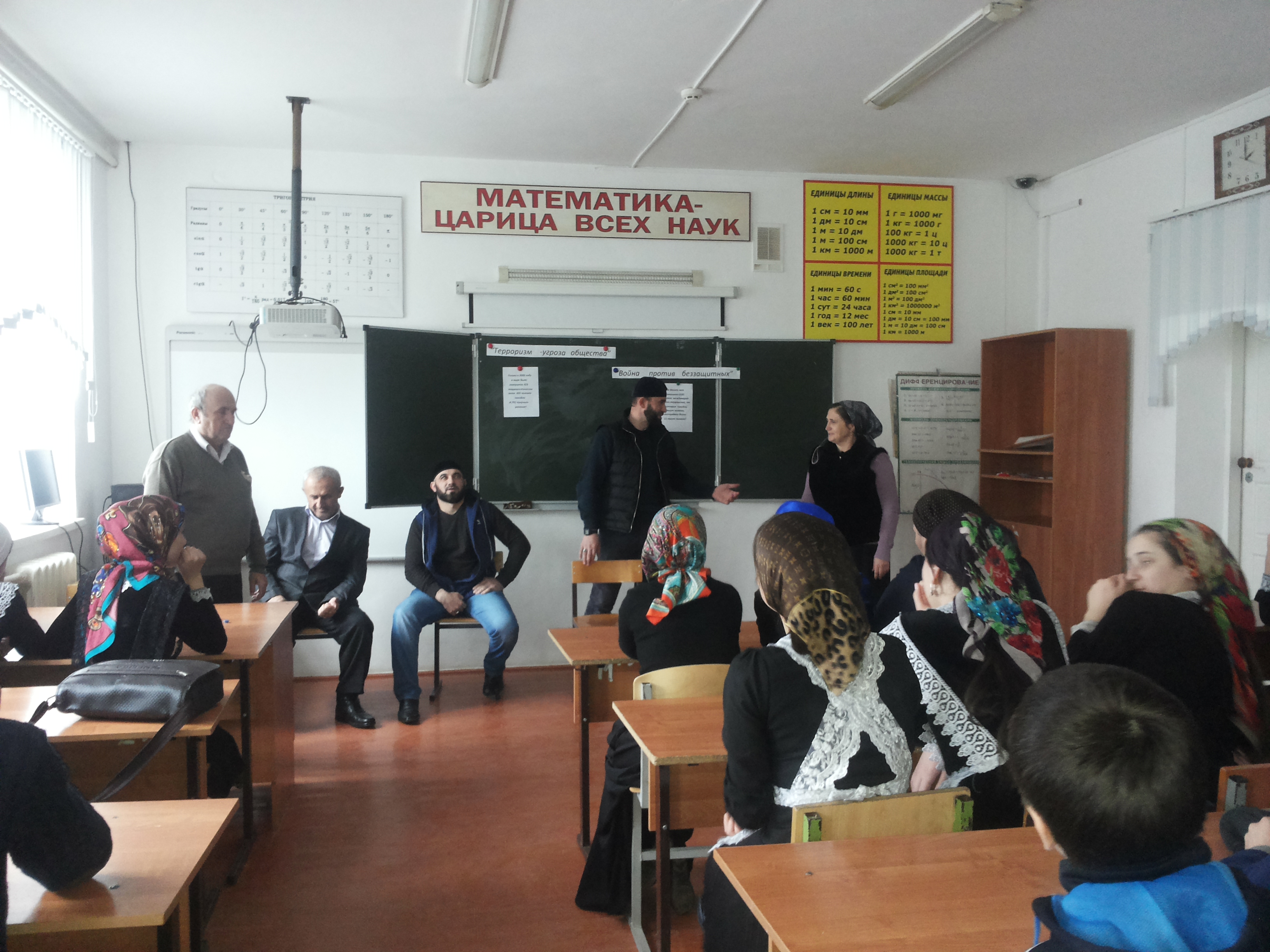 08.04.2015МБОУ «СОШ с.Чурч-Ирзу» ИнформацияСогласно графику проведения мероприятий по профилактике терроризма и экстремизма для :Объяснения сущности терроризма, его целей и видов;совершенствования у школьников знаний о терроризме;основ безопасности в ЧС;формирования общественного сознания и гражданской позиции подрастающего поколения.05.03.2015г. проведен общешкольный тренинг «Террор-угроза обществу». В тренинге приняли участие: имам села-Гезиеви.С.;2. учитель истории-Албеков Ю.З.;3.учитель ОБЖ-Гадаев А.С.;4. руководитель МО кл.рук.-Джарлаева Г.В.;5.уч-ся 8-11 классов.Урок прошел при высокой активности всех участников.С большим интересом и пользой для себя дети выслушали сообщения групп «ПОЛИТОЛОГОВ» и «СТАТИСТОВ», участвовали в обсуждениях проблемных ситуаций, которые заранее были подготовлены.Имам села дал оценку действиям террористов, как людей не имеющих истинной веры и предостерег, что в их числе часто бывают запуганные и одурманенные.Учитель ОБЖ изложил содержание действий при захвате в заложники.Все были едины в одном:»Террроризм-война против безащитных».Джарлаева Г.В. в своем выступлении рассказала о ценности человеческой жизни. Она закончила выступление словами Великого Пророка Мухаммеда(с.а.с..) : «Помните: однажды вы предстанете перед Аллахом и ответите за ваши деяния, так будьте же осторожны, не сходите с пути благочестия после моего ухода».По окончании все уч-ся получили памятки « по угрозе терроризма».