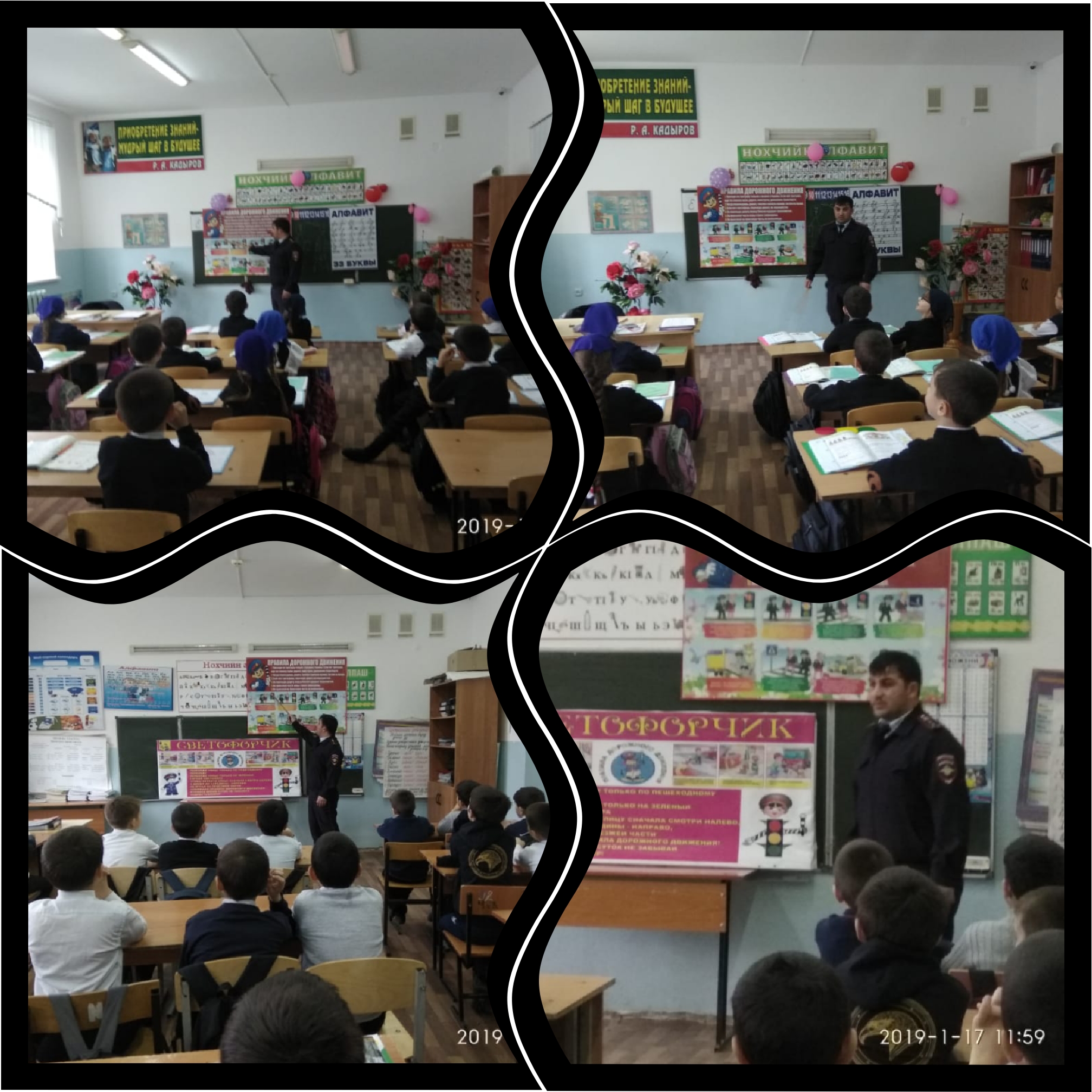 17.01.2019г. МБОУ «СОШ с.Чурч-Ирзу» в 1-4 классах проведены профилактические мероприятия по ПДД совместно с инспектором ОГИБДД ОМВД по Ножай-Юртовскому району капитаном полиции Бугаевым А.Э.