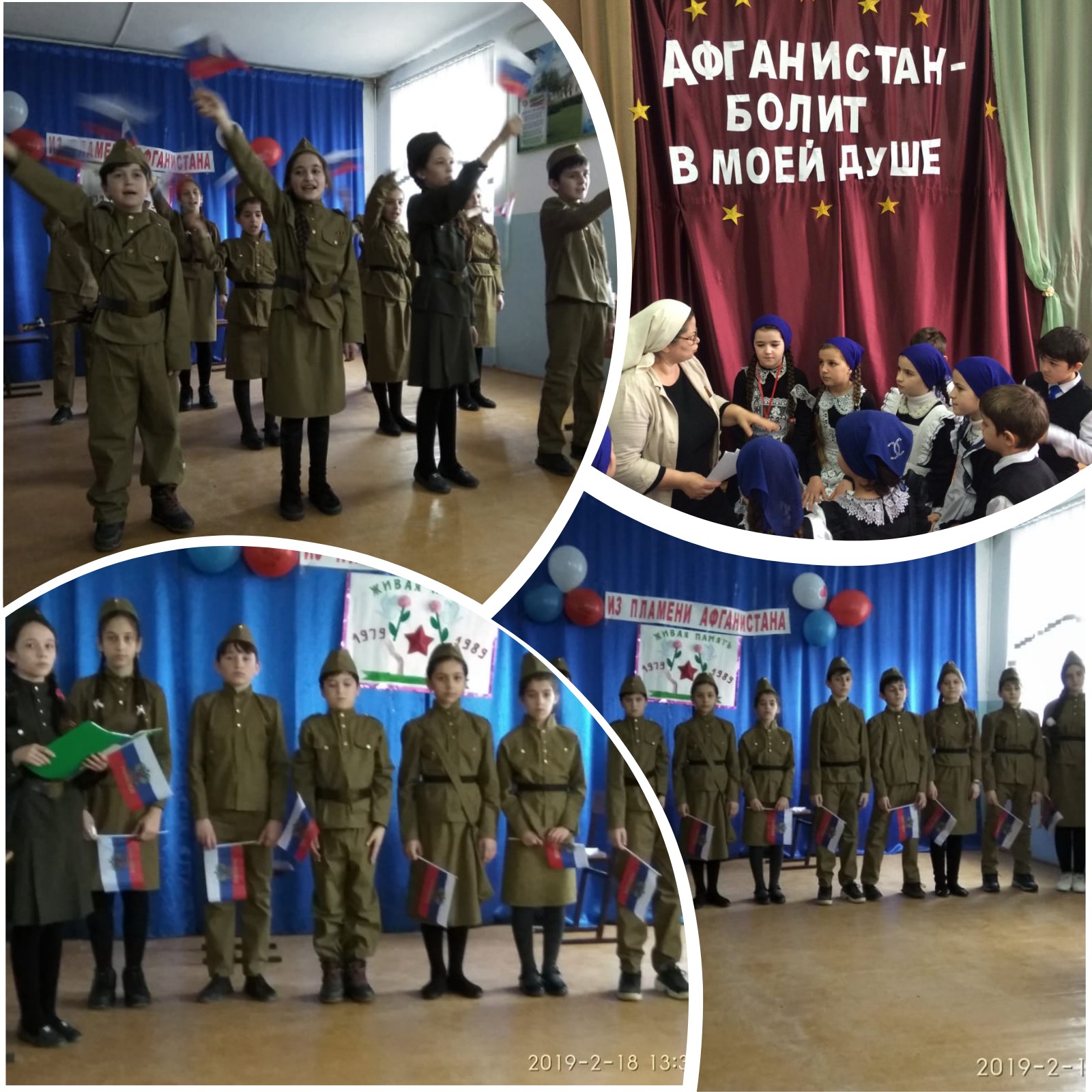 19.02.2019Информация о проведенных мероприятиях , посвященныхДню воина –интернационалиста В МБОУ «СОШ.с.Чурч-Ирзу» с 10 по 14 февраля 2019года проведены мероприятия , приуроченные Дню воина –интернационалиста. Проведены беседы, открытые классные часы, и общешкольное мероприятие «Из пламени Афганистана» ( 6 «а»кл. кл.рук. Оздарбиева И.А.) .